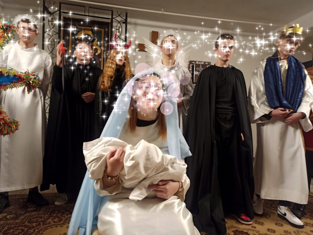 Tego samego dnia w Parafia rzymskokatolicka pw. Świętej Rodziny w Czarnej Białostockiej pod opieką i reżyserią Pani Gabrysi przedstawiliśmy jasełka.???? Dziękujemy Proboszczowi ks. Krzysztofowi za tą możliwość. Nasi podopieczni nauczyli się na pamięć swoich kwestii, jedna z naszych dziewczyn grała na gitarze kolędy. ???????? Przyszło bardzo dużo osób w tym wiele dzieci. ???????????? Dostaliśmy brawa na stojąco. ????????